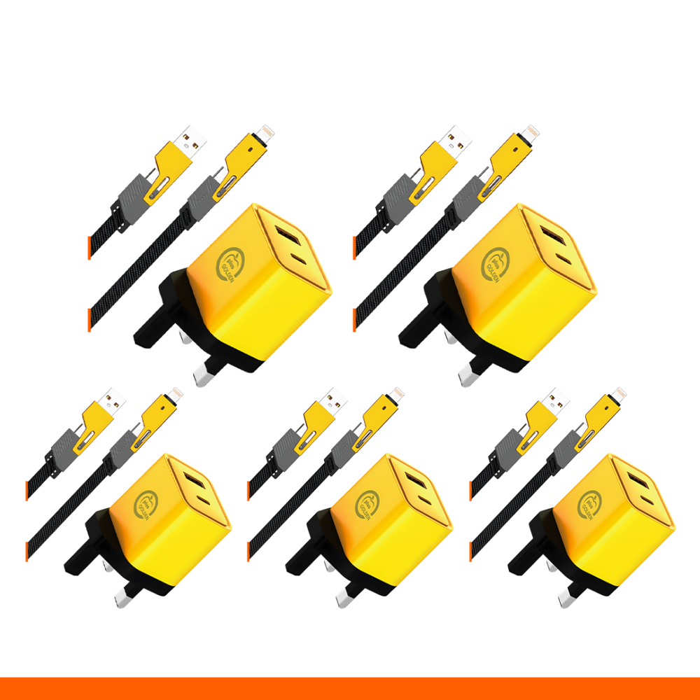بكج الشحن المتكامل (2 شاحن جداري + 2 كيابل + توصيلة كهربائية)
